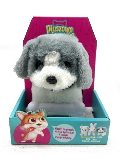 W zestawie: piesek wys. 15 cm, kość, funkcje: chodzi, popiskuje, rusza głową i ogonem, wym. Opak. 18,5 x 13,5 x 18 cm, baterie: 2 x aa niedołączone, 3+