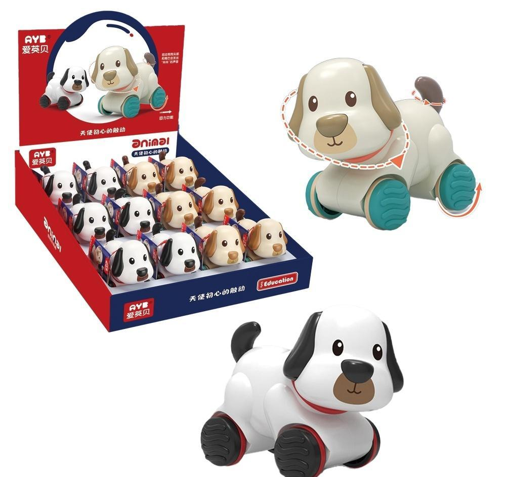 Piesek do prowadzenia na kółeczkach. W dwóch kolorach. Posiada obrotową główkę i ogonek. Ponadto piesek posiada napęd - po cofnięciu pieskiem i puszczeniu, zabawka sama jedzie do przodu Pakowanie: 12 szt./display Wymiary display'a: 29 x 36 x 29.7 cm Wymiary zabawki: 11 x 8,5 x 5,5 cm Wiek: 18+