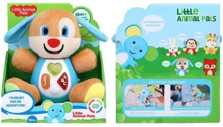 Odkryj świat przygód z Little Animal Pals - uroczym, interaktywnym szczeniakiem, stworzonym z myślą o dzieciach powyżej 18. miesiąca życia! Ten mięciutki pluszak to coś więcej niż zwykła przytulanka. Wyposażony w świecące przyciski i funkcje śpiewania, szczeniak Little Animal Pals zaprasza do radosnej nauki poprzez zabawę. Dziecko może naciskać przyciski, aby usłyszeć wesołe melodie i dźwięki, co stymuluje jego zmysły i rozwija zdolności poznawcze. Przytulny materiał sprawia, że szczeniak jest idealnym towarzyszem do snu i codziennych zabaw. Zabierz swojego małego przyjaciela wszędzie tam, gdzie idziesz i ciesz się niekończącymi się godzinami uśmiechu i odkrywania!