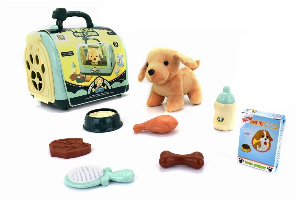 Zabierz ze sobą pieska, którego bezpiecznie przeniesiesz w specjalnym niebieskim kuferku. W zestawie znajdziesz pluszowego pieska oraz akcesoria tj. miska, karma, szczotka, butelka i kości. Kuferek otwiera się, a w bocznej ścianie jest specjalne otwierane okienko, aby pluszowy piesek mógł obserwować, co się dzieje na zewnątrz. Dzięki pieskowi w kuferku dziecko spełni marzenie o własnym czworonogu, a przede wszystkim zapozna się z opieką nad zwierzętami.