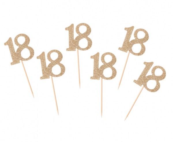 "TOPPER NA TORT NA 18 URODZINY -ZŁOTY BROKAT B&C Kolor: złoty brokat Wzór: liczba 18 Ilość sztuk: 6 Producent: Godan S.A. "
