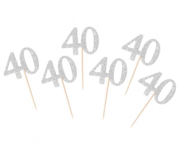"TOPPER NA TORT NA 40 URODZINY - SREBRNY BROKAT B&C Kolor: srebrny brokat Wzór: liczba 40 Ilość sztuk: 6 Producent: Godan S.A. "