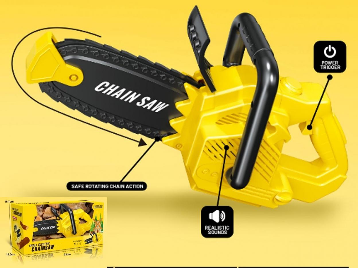 Realistyczna piła łańcuchowa dla małych majsterkowiczów! Zabawka posiada bezpieczny, obracający się łańcuch, efekty dźwiękowe oraz wygodny uchwyt, dzięki czemu dziecko może poczuć się jak prawdziwy fachowiec. Idealna do kreatywnej zabawy w warsztat i odgrywania ról. Produkt wykonany z trwałego tworzywa, dostosowany do dzieci powyżej 3 roku życia. Zasilanie bateryjne (szczegóły w instrukcji). Najważniejsze cechy: bezpieczny, obracający się łańcuch; realistyczne efekty dźwiękowe; wygodny uchwyt i przycisk uruchamiania; lekka i poręczna konstrukcja. Wymiary: długość zabawki: ok. 33 cm. Wymiary opakowania: ok. 33 16,7 12,5 cm. Idealny pomysł na prezent dla małego fana narzędzi i zabaw konstrukcyjnych.