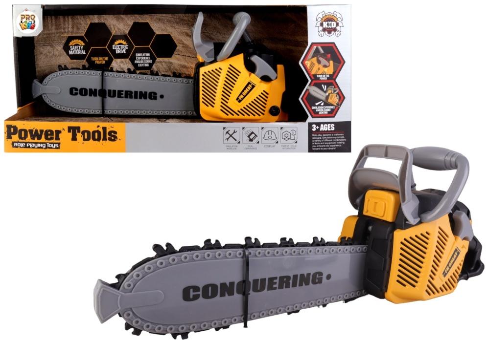 Zabawka wyposażona jest w ruchomy element imitujący łańcuch oraz efekty dźwiękowe, które symulują pracę prawdziwej piły. Po włączeniu dziecko może poczuć się jak podczas prawdziwej pracy w warsztacie lub w ogrodzie. Ergonomiczne uchwyty pozwalają wygodnie trzymać piłę podczas zabawy, a lekka konstrukcja sprawia, że jest odpowiednia dla najmłodszych użytkowników.