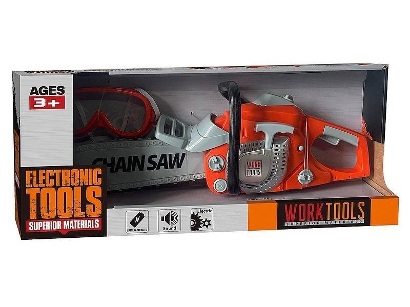 Piła na baterie z goglami ochronnymi