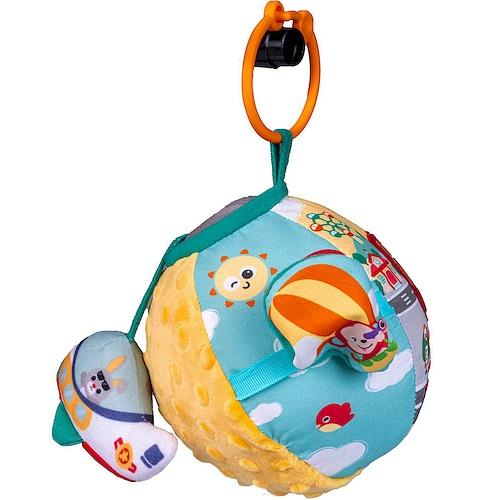 Grzechotka ukryta w środku zabawki zachęci dziecko do potrząsania nią, podrzucania i łapania.
