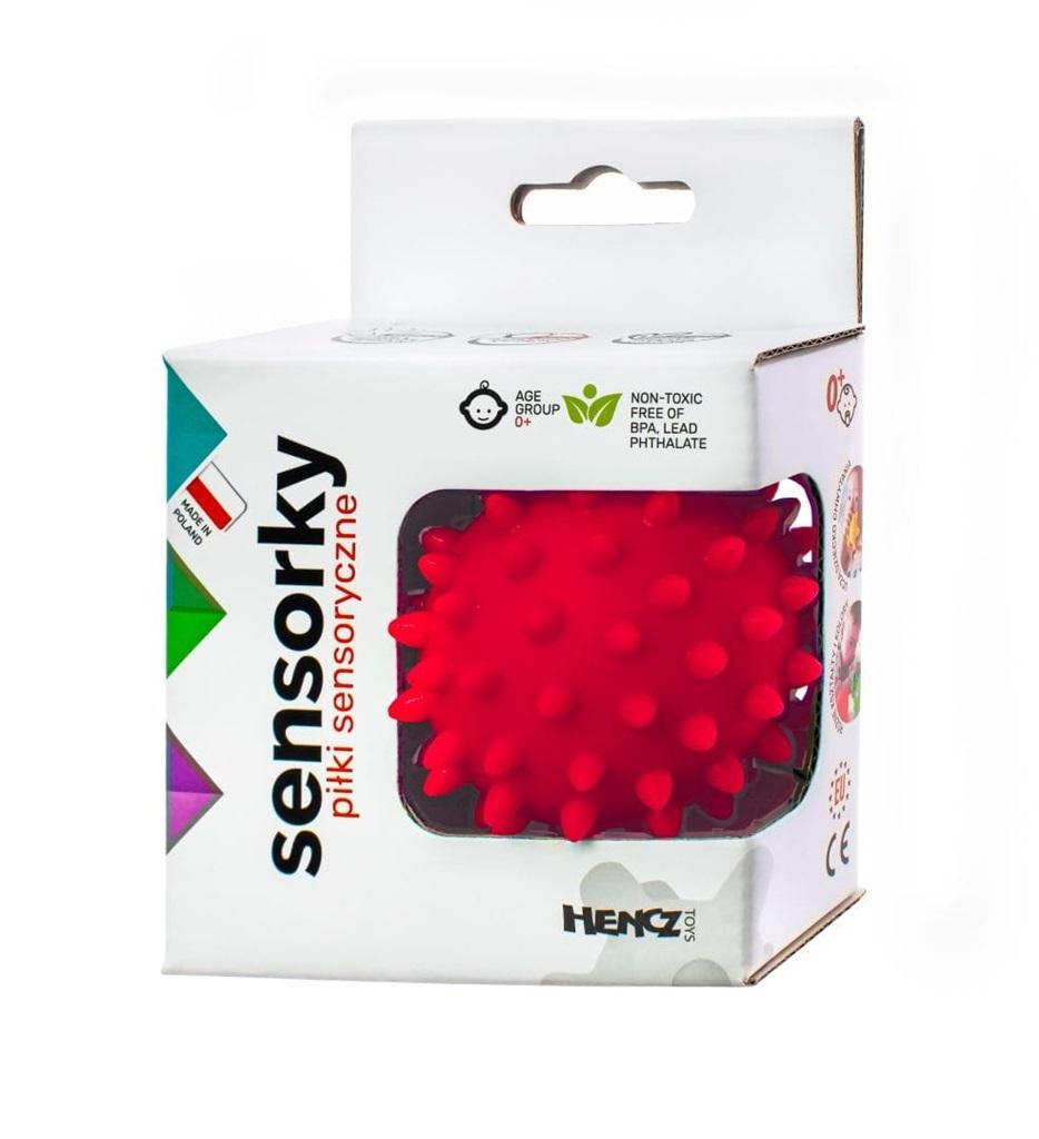 Wyraziste kolory i urozmaicona faktura to elementy cechujące Sensorky. Piłki sensoryczne zostały zaprojektowane tak, by pobudzać receptory czuciowe dziecka. Poniżej 3 miesiąca życia maluszek adoptując się do życia poza brzuchem matki napina mięśnie, które można rozluźnić wykonując delikatny masaż piłeczką, poprzez prowadzenie jej po plecach i nóżkach dziecka lub po całym ciele. Rozluźnione dziecko odczuwa większy komfort co przyspiesza zasypianie. Podając dziecku piłeczkę bezpośrednio do rączek, rozwijasz jego mięśnie dłoni. Taka forma zabawy uczy panowania nad palcami. Aby wspomóc ten proces zaleca się delikatny masaż opuszków palców za pomocą piłeczki. Dodatkowo łapanie, turlanie, podrzucanie piłeczki doskonali u dziecka zręczność i koordynację pomiędzy świadomym chwytaniem, a widzeniem. Piłeczki sensoryczne idealnie nadają się również do zabawy w trakcie kąpieli. Kąpiel kojarzona jest wówczas z czymś przyjemnym. Jednocześnie to doskonała okazja do zabawy stymulującej integrację sensoryczną u dziecka. Dodatkowo zagłębienia i wypustki są ciekawym elementem dla dziecka w okresie poznawania świata.
