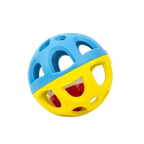 Piłka Grzechotka wykonana została z miękkiego, elastycznego tworzywa. W środku piłeczki umieszczona jest druga piłeczka z grzechotką. Piłka jest łatwa do chwytania i trzymania, dzięki ażurowej konstrukcji. Przy potrząsaniu lub toczeniu wydaje wesołe, grzechoczące dźwięki. Aktywizuje malucha do zabawy wspomaga rozwój motoryki oraz koordynacji ruchowej. Wiek: 3m+