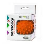 Wyraziste kolory i urozmaicona faktura to elementy cechujące Sensorky. Piłki sensoryczne zostały zaprojektowane tak, by pobudzać receptory czuciowe dziecka. Poniżej 3 miesiąca życia maluszek adoptując się do życia poza brzuchem matki napina mięśnie, które można rozluźnić wykonując delikatny masaż piłeczką, poprzez prowadzenie jej po plecach i nóżkach dziecka lub po całym ciele. Rozluźnione dziecko odczuwa większy komfort co przyspiesza zasypianie. Podając dziecku piłeczkę bezpośrednio do rączek, rozwijasz jego mięśnie dłoni. Taka forma zabawy uczy panowania nad palcami. Aby wspomóc ten proces zaleca się delikatny masaż opuszków palców za pomocą piłeczki. Dodatkowo łapanie, turlanie, podrzucanie piłeczki doskonali u dziecka zręczność i koordynację pomiędzy świadomym chwytaniem, a widzeniem. Piłeczki sensoryczne idealnie nadają się również do zabawy w trakcie kąpieli. Kąpiel kojarzona jest wówczas z czymś przyjemnym. Jednocześnie to doskonała okazja do zabawy stymulującej integrację sensoryczną u dziecka. Dodatkowo zagłębienia i wypustki są ciekawym elementem dla dziecka w okresie poznawania świata.