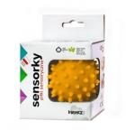 Wyraziste kolory i urozmaicona faktura to elementy cechujące Sensorky. Piłki sensoryczne zostały zaprojektowane tak, by pobudzać receptory czuciowe dziecka. Poniżej 3 miesiąca życia maluszek adoptując się do życia poza brzuchem matki napina mięśnie, które można rozluźnić wykonując delikatny masaż piłeczką, poprzez prowadzenie jej po plecach i nóżkach dziecka lub po całym ciele. Rozluźnione dziecko odczuwa większy komfort co przyspiesza zasypianie. Podając dziecku piłeczkę bezpośrednio do rączek, rozwijasz jego mięśnie dłoni. Taka forma zabawy uczy panowania nad palcami. Aby wspomóc ten proces zaleca się delikatny masaż opuszków palców za pomocą piłeczki. Dodatkowo łapanie, turlanie, podrzucanie piłeczki doskonali u dziecka zręczność i koordynację pomiędzy świadomym chwytaniem, a widzeniem. Piłeczki sensoryczne idealnie nadają się również do zabawy w trakcie kąpieli. Kąpiel kojarzona jest wówczas z czymś przyjemnym. Jednocześnie to doskonała okazja do zabawy stymulującej integrację sensoryczną u dziecka. Dodatkowo zagłębienia i wypustki są ciekawym elementem dla dziecka w okresie poznawania świata.