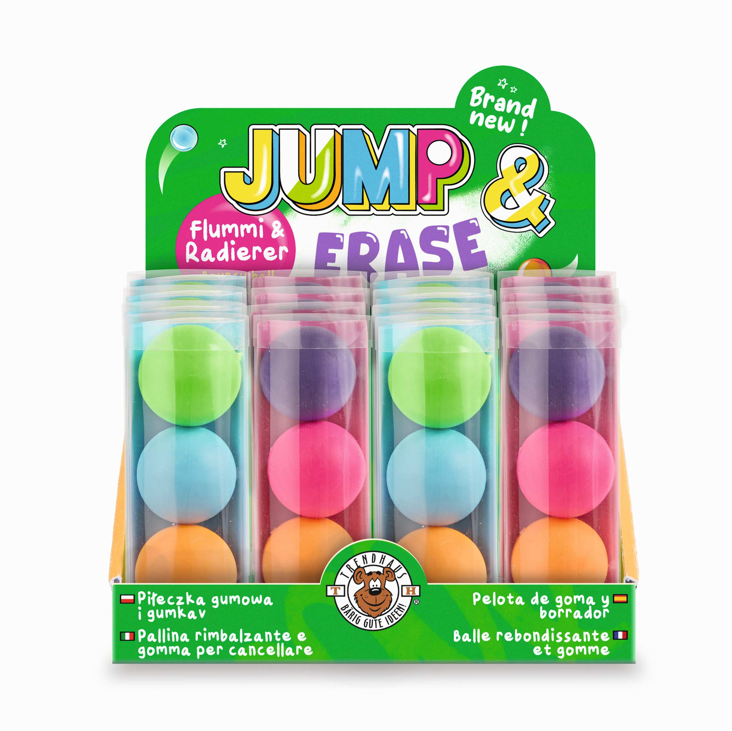 Ten praktyczny zestaw 2 w 1 zawiera trzy gumki do mazania w ciekawych kombinacjach kolorystycznych, które zapewniają również dodatkową zabawę jako Flummi. Kolorowa zabawa w praktycznej puszce do przechowywania - idealna do szkoły i wypoczynku!