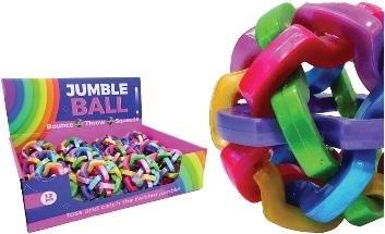 Opis: 12 szt/disp, śr. piłki 7 cm, piłka składa się z plątaniny gumowych pasków, można ją odbijać, gnieść, rzucać, wym. disp. 29,5 x 21,5 x 7,5 cm, 3+