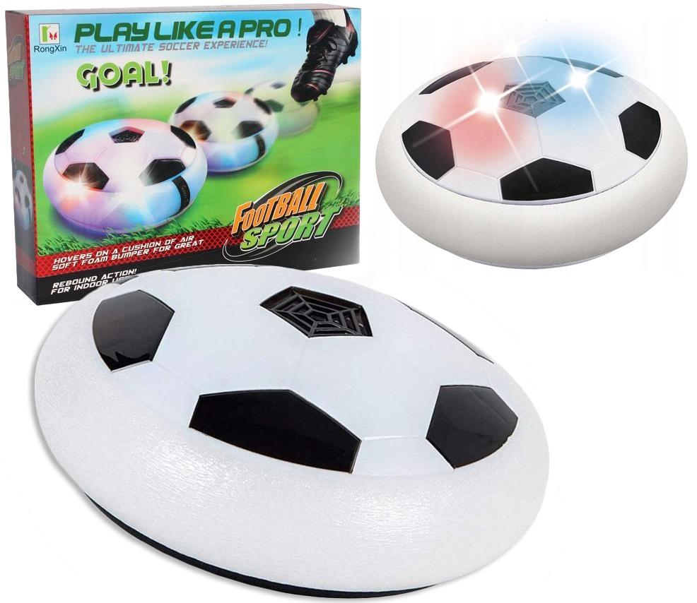 "Latająca piłka powietrzna to niezastąpiona zabawka do domu lub hali. Krążek po włączeniu świeci oraz unosi się lekko nad podłogą, dzięki czemu wystarczy delikatnie go kopnąć aby się przemieszczał."