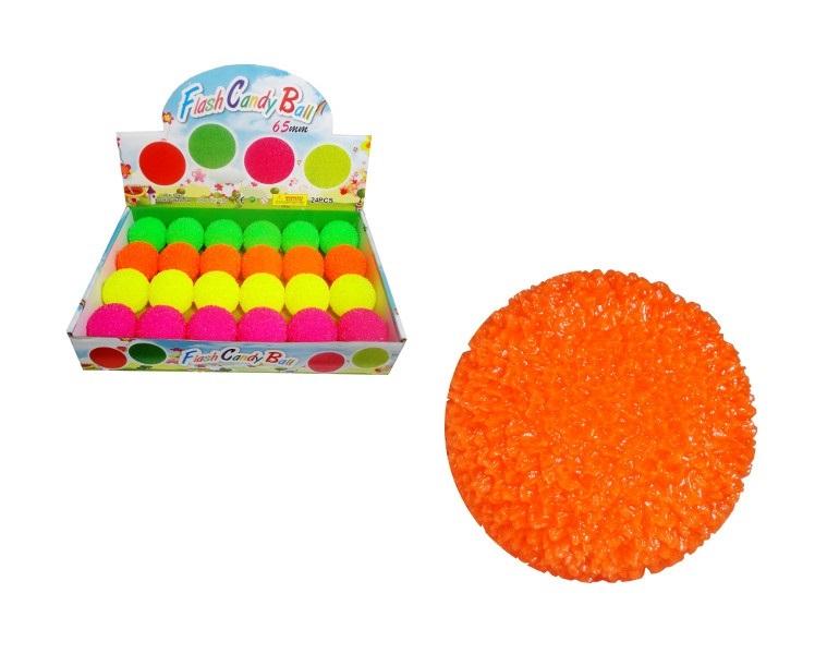 Gumowa piłeczka o nierównej, chropowatej powierzchni . Kiedy uderzy się piłką o podłoże świeci kolorowymi światełkami. Produkt występuje w kilku wersjach, wybierany losowo. Cena dotyczy jednej sztuki. Zabawka działa na baterie typu AG3. Baterie znajdują się w zabawce. #