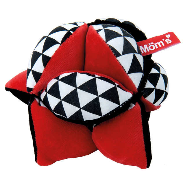 Mięciutka, materiałowa piłka Takane zwana również piłką puzzlową, od Mom's care została stworzona z myślą o maluszkach, które dopiero zaczynają chwytać. Konstrukcja pierwszej piłki Montessori pozwala na różny sposób chwytu, umożliwia swobodne przekładanie jej z ręki do ręki. Pomaga to budować siłę nadgarstka oraz koordynację wzrokowo-ruchową. Piłka już po pierwszym miesiącu życia maluszka może zawisnąć nad jego łóżeczkiem. Biało-czarno-czerwony kolor Takane będzie skupiał na sobie wzrok maluszka co pozwoli stymulować zmysł wzroku. Piłka wykonana jest z bezpiecznego weluru oraz bawełny a w środku znajduje się hipoalergiczny wypełniacz. W piłeczce znajduje się grzechotka, której delikatny dźwięk wzbudza zainteresowanie najmłodszych. Takane już po 1 miesiącu życia dziecka można zawiesić nad łóżeczkiem. Grzechotka sprawia, że maluch będzie próbował ją schwytać rączkami i ciągnąć by usłyszeć przyjemny dla ucha dźwięk. Piłkę można zawiesić także blisko stóp dziecka co będzie zachęcać go do kontrolowanych ruchów nóżkami i kopnięć. Starsze dzieci, które samodzielnie siedzą i pełzają mogą dzielić piłeczkę na drobniejsze elementy oraz za nią podążać. Ze względu na kształt, piłka Takane nie będzie się daleko toczyć, tym samym zachęcając dzieci do pełzania lub podejmowania prób sięgania po nią. Piłeczka motywuje do zabawy, potrząsania, prób rzucania i turlania. Miękkość piłeczki sprzyja jednocześnie nauce chwytania i przekładania z jednej rączki do drugiej.