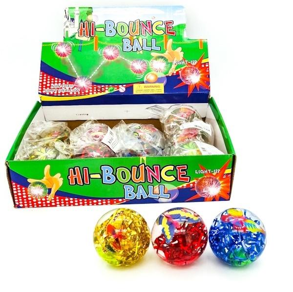 Świecąca piłka z kolorowymi tasiemkami i obrazkiem motyla w środku. Zaczyna świecić gdy odbijemy nią o podłogę. Średnica piłeczki 7,5cm.