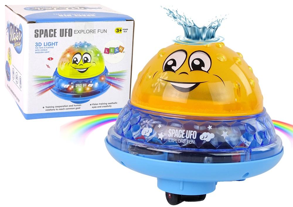 Piłka Wodna UFO Diody Wesoła Muzyka Żółta Super zabawa z wesoła muzyką i kolorowymi światłami ! Małe ufo wywoła uśmiech na twarzy malucha i pomoże oswoić się z kąpielą. Z taką piłką kąpiel odbędzie się bez problemu. Efekty świetlne i dźwiękowe rozbawią malucha, a czas wspólnej zabawy będzie przyjemniejszy. Dwuczęściowa zabawka sprawdzi się w dzień i nocą. Piłka ma kolor żółty, a na górze znajdują się otwory, z których wychodzą strumienie wody. Wystarczy położyć je na tafli wody, a woda zacznie tryskać. Po całej zabawie w wannie można przenieść się do pokoju, gdzie czeka mała podkładka w kształcie talerza ufo. Gdy powierzchnie piłki i talerza złączą się, uruchamia się muzyka i kolorowe diody. Mała dyskoteka w pokoju malucha. Czas na zabawę! Wymiary zabawki: 13 cm x 13 cm x 13 cm Wymiary opakowania: 13 cm x 13 cm x 13 cm Zabawka zaprojektowana jest z myślą o maluchach, które osiągnęły 3 rok życia. Talerz ufo zasilany jest bateriami 3 x 1,5V "AA". Natomiast piłeczka trzema bateriami 1,5 V AAA, brak w zestawie. Wykonana jest z w pełni bezpiecznego, atestowanego materiału, jakim jest plastik. Posiada certyfikat CE, będący potwierdzeniem spełnienia wymagań postawionych przez Unię Europejską.