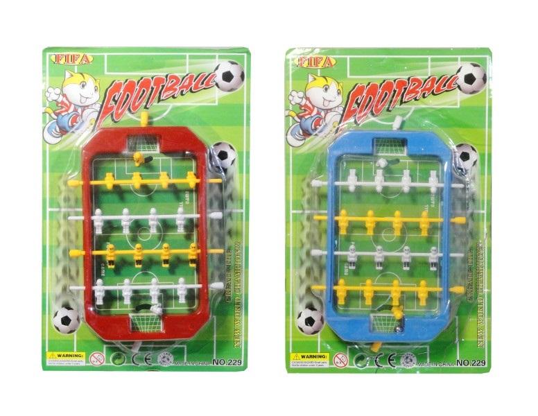 Znana i lubiana gra piłkarze w mniejszej wersji. Teraz będziesz ja mógł zabrać ze soba wszędzie! Zaproś do gry rodzeństwo lub rodzica i cieszcie się wspólnie spędzonym czasem. Produkt zapakowany w kartonową podstawkę z przezroczystym kloszem.Produkt występuje w kilku wersjach kolorystycznych, wybierany losowo. Cena dotyczy jednej sztuki.