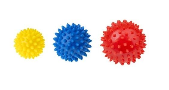 Piłki z kolcami (jeżyki) przeznaczone do masażu ciała, rehabilitacji oraz terapii integracji sensorycznej. Nadają się do masażu całego ciała, w tym po przebytym urazie, i wspierają pracę przy wzmożonym oraz obniżonym napięciu mięśniowym u dzieci.