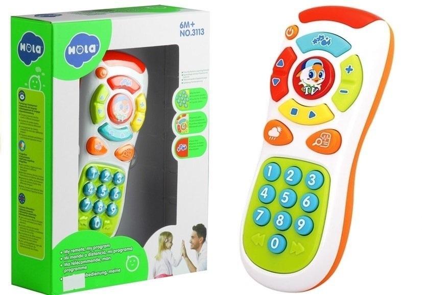 Edukacyjny pilot telewizyjny dla malucha Interaktywne zabawki z efektami świetlnymi i dźwiękowymi to coś, co uwielbiają wszystkie dzieciaki. Ruchliwe i ciekawe świata maluszki lubią podbierać rzeczy, które zarezerwowane są dla dorosłych - klucze, telefony czy piloty. Z tego powodu prezentujemy edukacyjny pilot, który z pewnością będzie idealnym rozwiązaniem tej sytuacji, a także rewelacyjną zabawką dla dzieciaków powyżej 6. miesiąca życia. Zabawka kryje w sobie bardzo ciekawe opcje, między innymi: - guzik zasilania ON/OFF, - świecący na czerwono przycisk z kaczorkiem, - klawiaturę z 10 przyciskami, pomagającymi w nauce cyfr oraz liczenia w języku angielskim - dwa guziki odpowiadające za poziom głośności zabawki, - przycisk ustawień, bardzo prosty i intuicyjny w użyciu, - przycisk muzyczny, uruchamiający wesołe melodie i piosenki, - przyciski służące do zmiany kanałów telewizyjnych, imitujące prawdziwą opcję, - przycisk prognozy pogody, przewidujący chmury, słońce, ulewę bądź opady śniegu, - przyciski STOP/START, służące do sterowania dźwiękiem. Zalety tego pilota do zabawy można mnożyć. Rozmiar zabawki dopasowany jest do małych rączek dziecka, co sprawia, że chwytanie go i zabawa nie przysporzą dziecku najmniejszego problemu. Zabawkowy pilot swym kształtem przypomina prawdziwe urządzenia, dzięki czemu maluch z ogromną chęcią będzie go używał, pozostawiając rodzicom i starszemu rodzeństwo właściwe urządzenie. Uważamy, że zabawkowy pilot jest obowiązkową zabawką dla każdego malucha, ponieważ bardzo pozytywnie wpływa na rozwój dziecka, bardzo istotny w pierwszych miesiącach i latach jego życia. Przedmiot sprawia, że dziecko przyswaja nowe słowa i liczby, rozróżnia kolory i kształty, a także stymuluje zmysł dotyku. Pilot sprawia, że dziecko ćwiczy pamięć wzrokową, znacznie usprawniając swe logiczne myślenie, spostrzegawczość oraz skupienie. Ta wesoła, interaktywna zabawka uczy kolorów, kształtów i cyfr, zachęcając do zabawy swym opływowym kształtem i delikatną, przyciągającą wzrok kolorystyką. Pilot został wykonany z atestowanych i trwałych materiałów, dzięki posiada certyfikat bezpieczeństwa CE. Zabawka zapakowana jest w estetyczne, kartonowe pudełeczko z witrynką, dzięki czemu jest doskonałą propozycją prezentową. Wymiary zabawki: - 16 cm x 6,5 cm. Wymiary opakowania: - 22 cm x 15,5 cm x 5 cm.