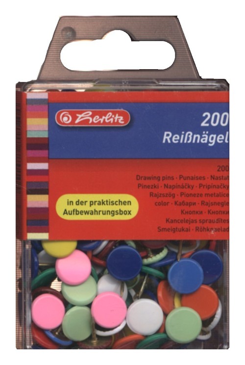 Pinezki metalowe w praktycznych plastikowych pudełkach. Każde opakowanie zawiera 200 sztuk pinezek.