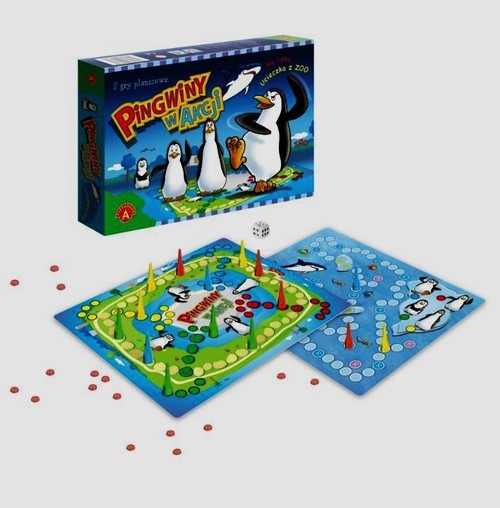 Pingwiny w akcji"" to 2 gry planszowe. Pierwsza gra - ""Ucieczka z ZOO"" polega na tym, żę każdy z graczy ma swoją drużynę pingwinów, które chcą jak najszybciej wydostać się z ZOO. Zwycięzcą w tej grze zostanie gracz, który pierwszy przeprowadzi swoje pingwiny poza jego mury. W drugiej grze "" Na ryby"" pingwiny ruszają na połów ryb. Krążąc po torze planszy gracze starają się trafić jak najszybciej na pola, które premiowane są żetonem- czyli rybą. Zwycięży ten , kto zdobędzie najwięcej ryb. W czasie polowu trzeba jednak uważać, by nie dostać się w paszczę rekina.
