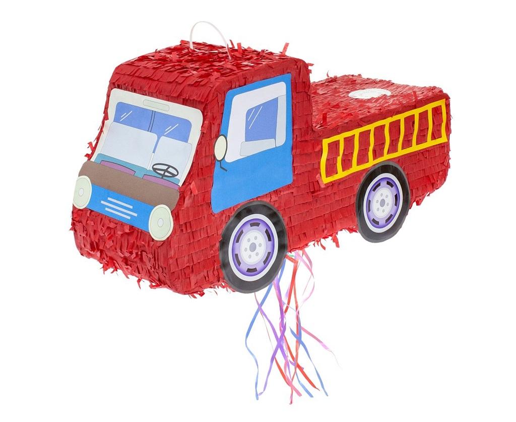 URODZINOWA PINIATA NA SZNURKI - WÓZ STRAŻACKI Wymiary piniaty: 47 x 17 x 25,5cm Kolor dominujący: Czerwony Wzór: Wóz strażacki Rodzaj piniaty: Na sznurki (do ciągnięcia) Liczba sztuk w opakowaniu: 1 Producent: Godan S.A. Wyrób ręcznie robiony, każdy egzemplarz może się różnić od wzoru na fotografii odcieniem kolorów, kształtem lub wielkością.
