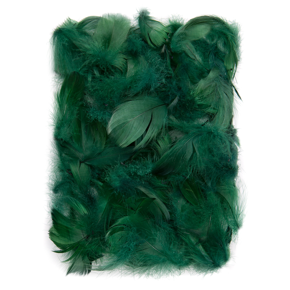 Specjalnie wyselekcjonowane piórka w odcieniu ciemnej zieleni. Doskonałe uzupełnienie różnego rodzaju prac kreatywnych.