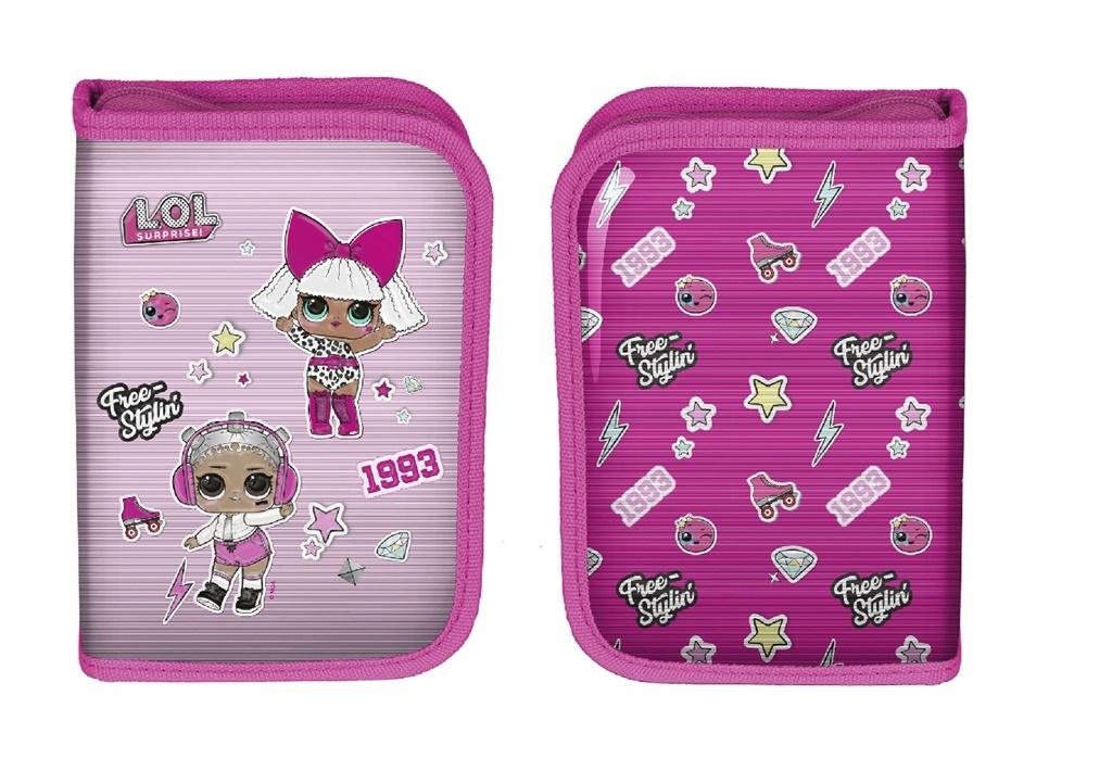 Piórnik bez wyposażenia L.O.L Surprise. Piórnik jednokomorowy posiada zadrukowane, kolorowe wnętrze. Wyposażony jest w dwie klapy z uchwytami na przybory piśmiennicze. W Paso staramy się, by nasze piórniki były funkcjonalne i ułatwiały organizację przyborów szkolnych podczas lekcji. Waga: 150 g Rozmiar: 19,5x13x3,5 Materiał: PVC