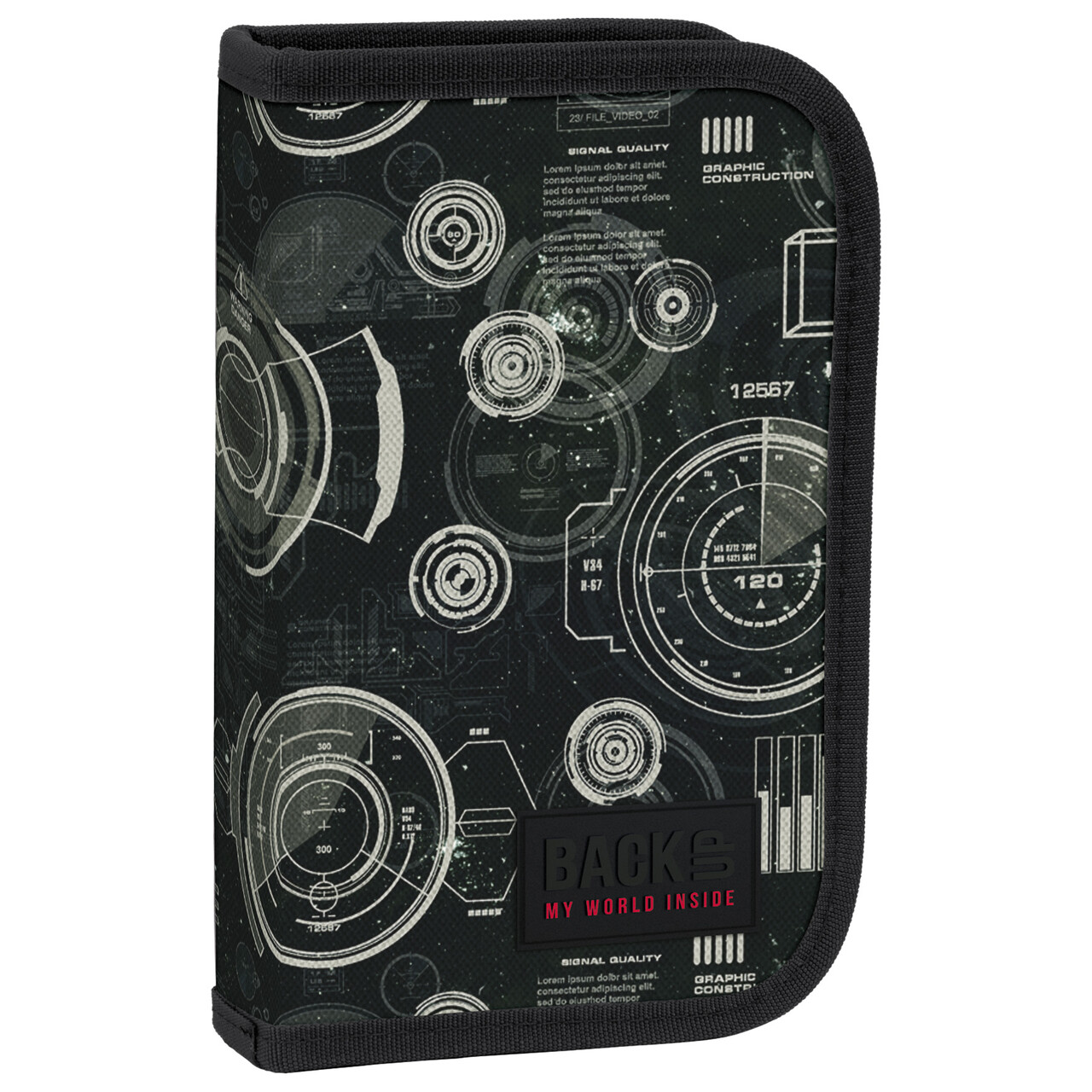 Jakie tajemnice skrywa niebo? Czy jest pełne niezbadanych obiektów? Jakie zjawiska kryją się pomiędzy chmurami? Piórnik szkolny z kolekcji Radar stworzony został dla miłośników nauki i poszukiwaczy odpowiedzi na nurtujące pytania. Połączenie czerni z kolorem khaki wektorów radarów tworzy oryginalny, a zarazem tajemniczy motyw. Techniczna grafika zachęca do wyruszenia w podróż, której głównym celem jest wiedza! Jednokomorowy piórnik BackUP z wyposażeniem posiada: