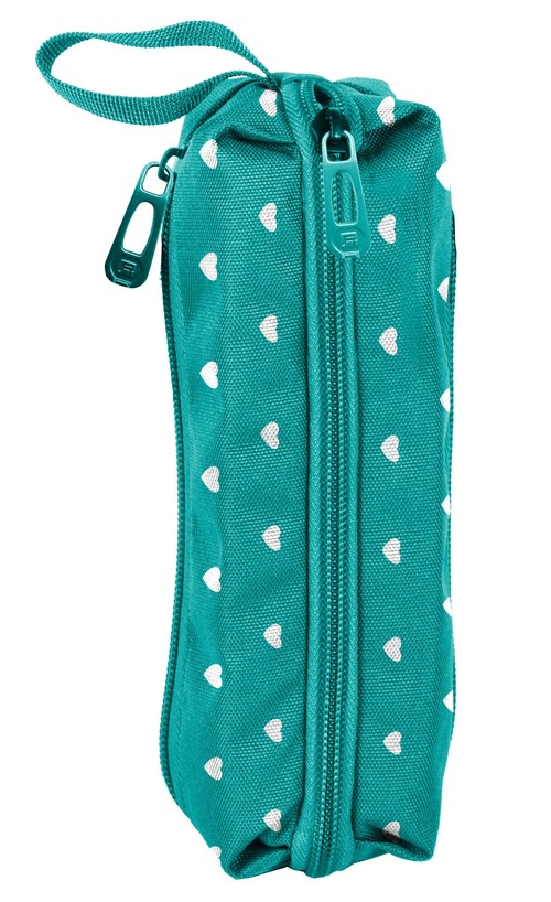 Piórnik, przybornik trzykomorowy. Może także służyć jako mini-kosmetyczka. Trzy zapinane na zamek przegródki umożliwiają zachowanie porządku.