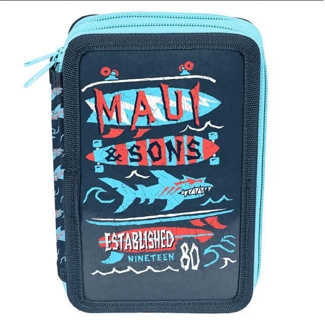 Piórnik bez wyposażenia Maui and Sons granatowo-czerwony. Piórnik dwukomorowy posiada zadrukowane, kolorowe wnętrze. Zamykany jest na wygodne dwa zamki. Wewnątrz piórnika znajdują się uchwyty na przybory piśmiennicze. Wzór piórnika został dopasowany do kolekcji licencyjnej Maui and Sons, więc idealnie sprawdzi się jako uzupełnienie szkolnej wyprawki. W Paso dbamy, aby nasze piórniki były funkcjonalne, lekkie i jednoczesnie pakowne.