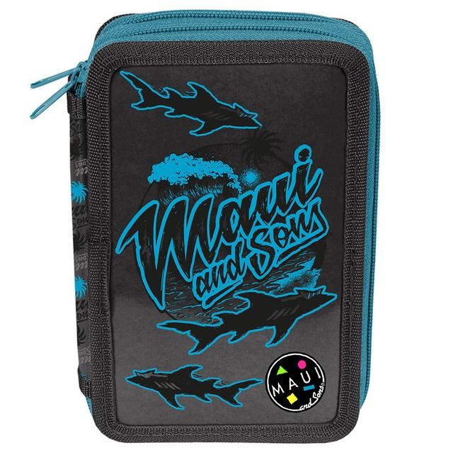 Piórnik bez wyposażenia Maui and Sons czarno-niebieski. Piórnik dwukomorowy posiada zadrukowane, kolorowe wnętrze. Zamykany jest na wygodne dwa zamki. Wewnątrz piórnika znajdują się uchwyty na przybory piśmiennicze. Wzór piórnika został dopasowany do kolekcji licencyjnej Maui and Sons, więc idealnie sprawdzi się jako uzupełnienie szkolnej wyprawki. W Paso dbamy, aby nasze piórniki były funkcjonalne, lekkie i jednocześnie pakowne.