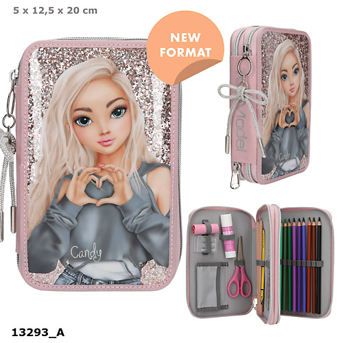 Piórnik podwójny z wyposażeniem, brokatowy TOP Model.