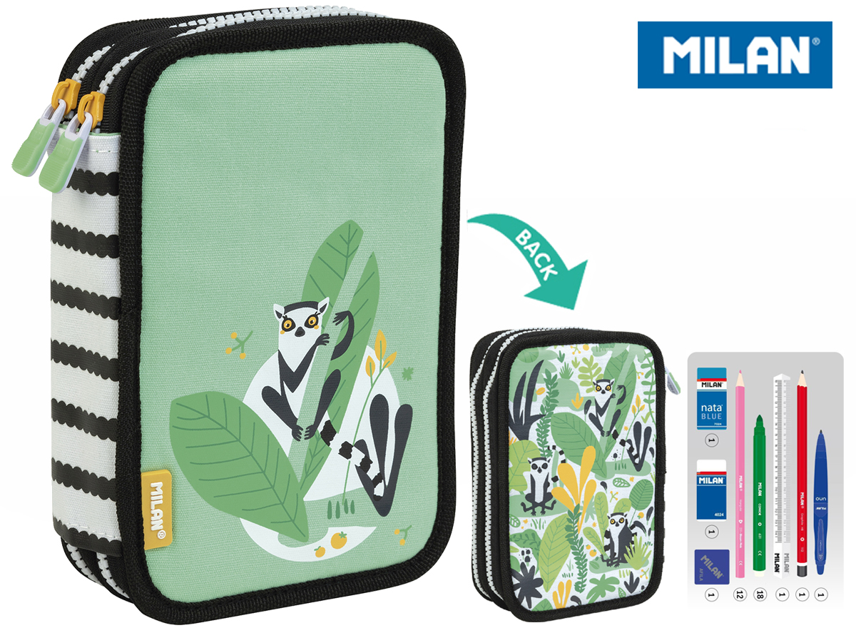 Piórnik 2 poz. z wyprawką Zielony lemur MILAN