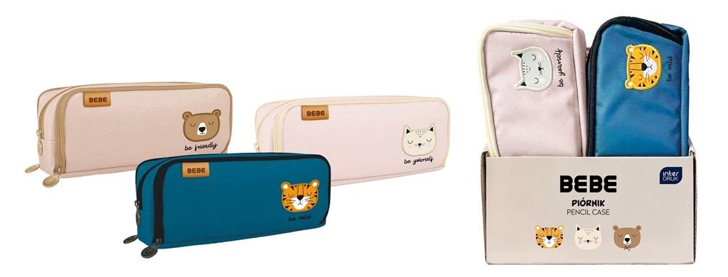 Piórnik z trzema praktycznymi komorami z kieszonkami i uchwytami na akcesoria. Naszywka ze zwierzakiem i suwak z tłoczeniem. Duża pojemność. 3 wzory / 6 szt.