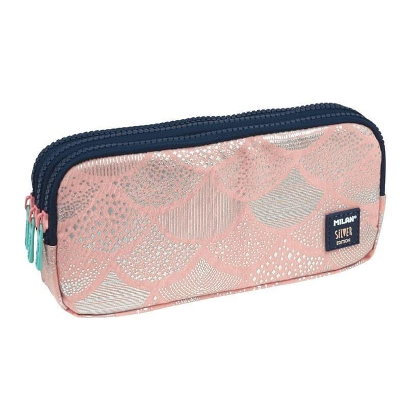 Opakowanie Piórnik 3 komorowy duży Silver 4 róż MILAN