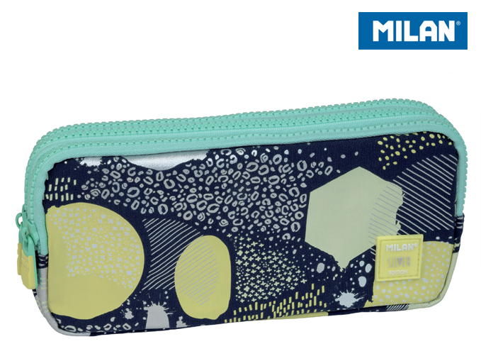 Piórnik saszetka MILAN z 3 komorami z kolekcji SILVER 5 w kolorze granatowym ze srebrnym nadrukiem.