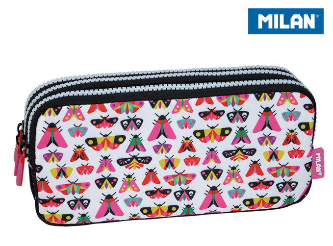 Piórnik saszetka MILAN z 3 komorami z kolekcji ZUM ZUM w kolorze białym z kolorowym nadrukiem.