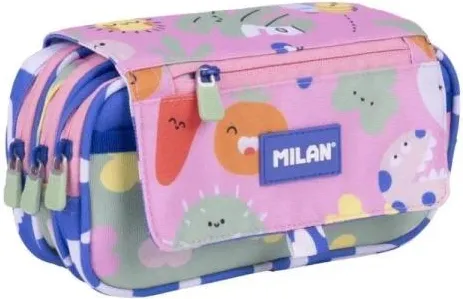 Piórnik saszetka z 3 przegrodami zapinanymi na suwak i małą kieszonką z przodu na klapie zamykającej piórnik guzikiem. Kolory różowy i zielony. Specjalna seria Green & Grow z rysunkami roślin, kwiatów, grzybów, owadów i warzyw. Dopasuj do kolorowanek. Skład tkaniny: poliester. Wymiary: 13 x 24 x 10 cm.