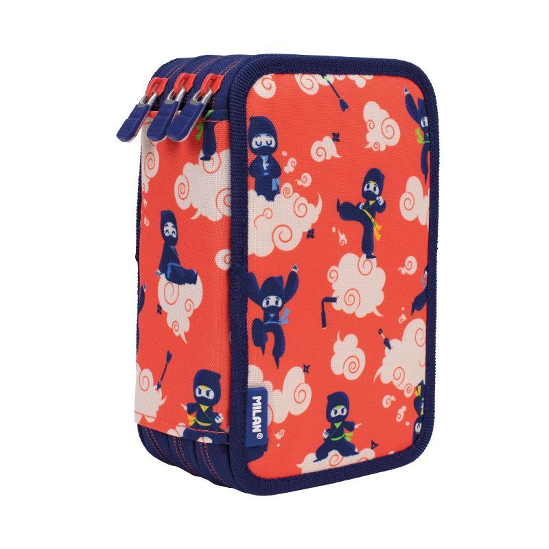 Piórnik 3 - poziomowy z wyposażeniem, który pozwala utrzymać przybory szkolne zawsze w porządku i łatwo dostępne. Kolekcja NINJUTSU pokazuje cichych i zabawnych ninja skaczących przez chmury.