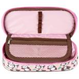 Jednokomorowy usztywniany piórnik zapinany na zamek z ozdobną zawieszką, którego wnętrze całkowicie wykończone jest podszewką. Wewnętrzna klapka posiada gumkę na 5 sztuk przyborów do pisania, dodatkowo w piórniku znajduje się klapka z gumką na 4 sztuki przyborów oraz kieszonką z siateczki zapinaną na zamek.