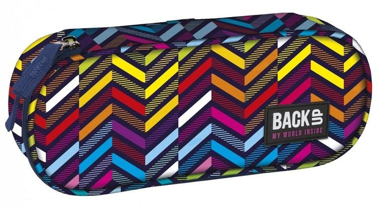 Piórnik BackUP model A 10 to wzór o przestrzennym kształcie kolumn ułożonych z różnokolorowych klocków, układających się w jodełkę, tworzących wielobarwną i innowacyjną mozaikę. Wyposażenie: - wewnętrzny organizer na 5 ołówków - wewnętrzna klapka z organizerem i zapinaną kieszenią - podszewka z nadrukiem logo - podwójny ściągacz zamka - rozmiar 23x9x5cm
