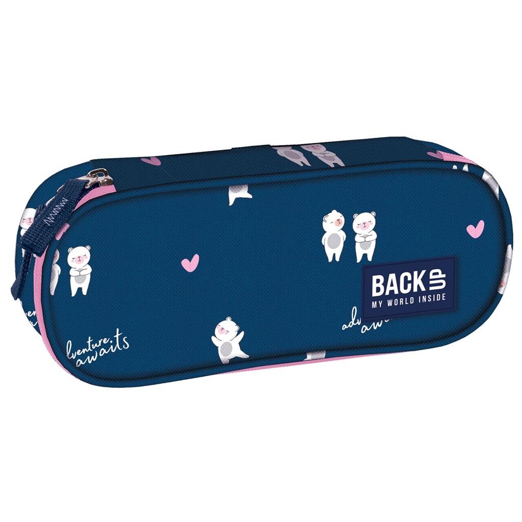Pełen miłości wzór, gdzie pluszowe niedźwiadki, przeplatane serduszkami tulą się do siebie. Jednokomorowy piórnik w granatowym kolorze, ozdobiony uroczymi, zakochanymi misiami w zabawnych pozach. Głęboki granat idealnie współgra z białym i różowym kolorem. Pozytywny, słodki motyw wprowadzi Cię w doskonały nastrój każdego dnia. Białe niedźwiadki zapraszają byś wyruszył z nimi w poszukiwaniu przygód. Adventure awaits!