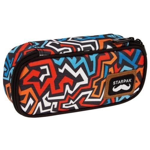 Piórnik saszetka o owalnym, spłaszczonym na bokach kształcie, jest bardzo pojemny i pomieści wszystkie niezbędne przybory szkolne. Wewnątrz znajduje się dodatkowa klapka z elastycznymi uchwytami, które umożliwiają przechowywanie najbardziej niezbędnych przyborów do pisania. Piórnik jest zasuwany na trwały zamek, a jego wierzch pokryty jest atrakcyjną, młodzieżową grafiką. Na piórniku znajduje się naszywka z modnym motywem wąsów.