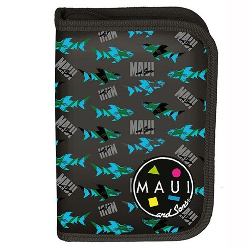 Piórnik jednokomorowy Maui and Sons z dwoma klapkami bez wyposażenia. Zadrukowane kolorowe wnętrze.
