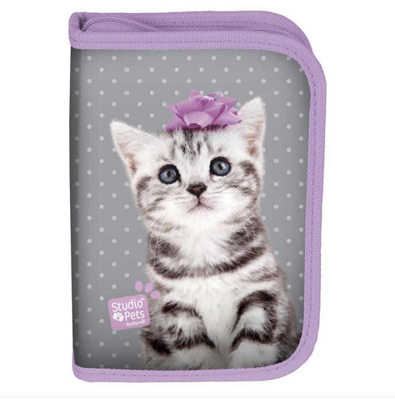 Piórnik bez wyposażenia Studio Pets szaro-fioletowy. Piórnik jednokomorowy posiada zadrukowane, kolorowe wnętrze. Wyposażony jest w dwie klapy z uchwytami na przybory piśmiennicze. W Paso staramy się, by nasze piórniki były funkcjonalne i ułatwiały organizację przyborów szkolnych podczas lekcji.