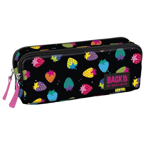 Piórnik BackUP model B 05 w inspirowane twórczością Andy'ego Warhola truskawki w intensywnych barwach na czarnym tle. Piórnik dla tych, którzy kochają słodycz lata i intensywne kolory. Wyposażenie: - 2 zapinane komory - ściągacze zamka z tkaniny - podszewka z nadrukiem logo