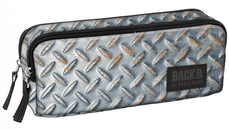 Piórnik BackUP model B 42 metal? - niemożliwe... dopiero po dłuższej chwili obserwator orientuje się, że piórnik wcale nie jest wykonany z blachy rodem z amerykańskiego warsztatu samochodowego. Wyposażenie: - 2 zapinane komory - ściągacze zamka z tkaniny - podszewka z nadrukiem logo - rozmiar 23x11x