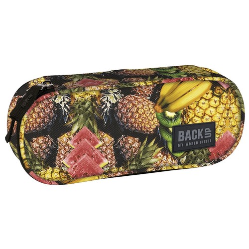 Piórnik BackUP model A 29 w lekko szalony wzór soczystych owoców tutti frutti. Wyposażenie: - wewnętrzny organizer na 5 ołówków - wewnętrzna klapka z organizerem i zapinaną kieszenią - podszewka z nadrukiem logo - podwójny ściągacz zamka - rozmiar 23x9x5cm